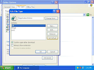 This will ensure that whenever a .reg file is double clicked,it will not merge the changes by default.The same can be done for any other file type using the File Types dialog box.