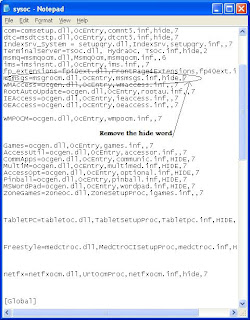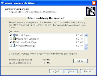 3.Save the modified sysoc.inf file.(if needed you can first backup this file by copying and storing it somewhere else).