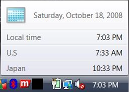 It is possible to show multiple additional clocks(two to be precise) in Windows Vista each configured to be of a specific time zone apart from the local time that Vista displays.