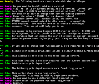 In the previous part,we installed Cygwin with openssh package on Vista machine.