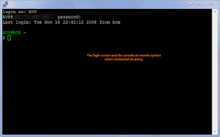 The login prompt will ask for the user name and password (ideally administrative privileges),once correctly entered the prompt shows up and you are now managing a remote system via ssh using Putty.