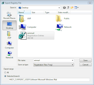 First we need to back up the associated registry key of Windows Mail.