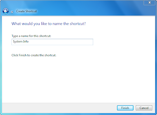 3.Click Next and then after naming it something appropriate like System Info hit Finish.