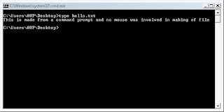 5.To display the contents of this file,just issue the command : type filename.extension ,in this case type hello.txt